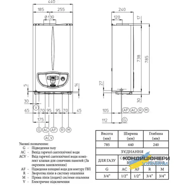 Благодаря небольшим габаритам котёл легко устанавливается даже в узких нишах или в шкафах, не теряя при этом производительности.