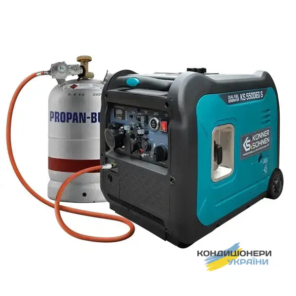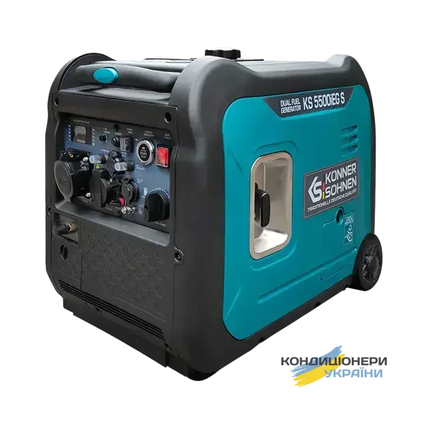 Konner&Sohnen KS 5500iEG S — це сучасний інверторний генератор із можливістю роботи на бензині та газі (LPG), розроблений для стабільного резервного електропостачання будинку, дачі або комерційного об’єкта. Модель поєднує інверторну технологію з чистою синусоїдою та економічну двопаливну систему, що забезпечує гнучкість у виборі джерела палива.
