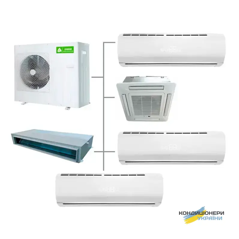 Зовнішній блок модель C4OU-28HDR1 для мульти-сплит системи Chigo. Можливість підключення від 2-х до 4-ти внутрішніх блоків (7, 9, 12, 18 типорозміру) для створення ідеального клімату в приміщенні будь-якого типу : квартирі, будинку, офісі, магазині, ресторані. Кондиціонери Chigo настільки практичні, що цілорічно стануть незамінними і зручними агрегатами для управління кліматом в приміщенні. Инверторная система кондиціонера контролює рівень шуму, який значно нижче, порівняно з іншими неинверторными моделями. Застосування корозійностійких матеріалів гарантує тривалий період експлуатації електронних компонентів. Мультисплит-система також має широкий діапазон допустимих зовнішніх температур.