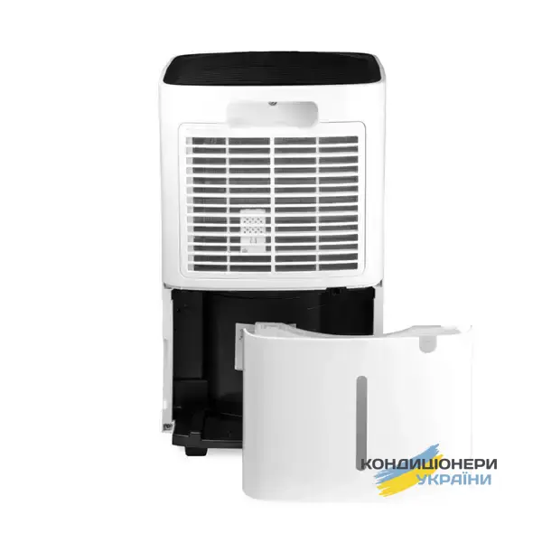 Осушення здійснюється за принципом конденсації: вологе повітря проходить крізь теплообмінник, де надлишок вологи перетворюється на воду та накопичується у резервуарі об’ємом 2 л. При заповненні бака прилад автоматично вимикається. Для зручності можна підключити шланг для безперервного дренажу.